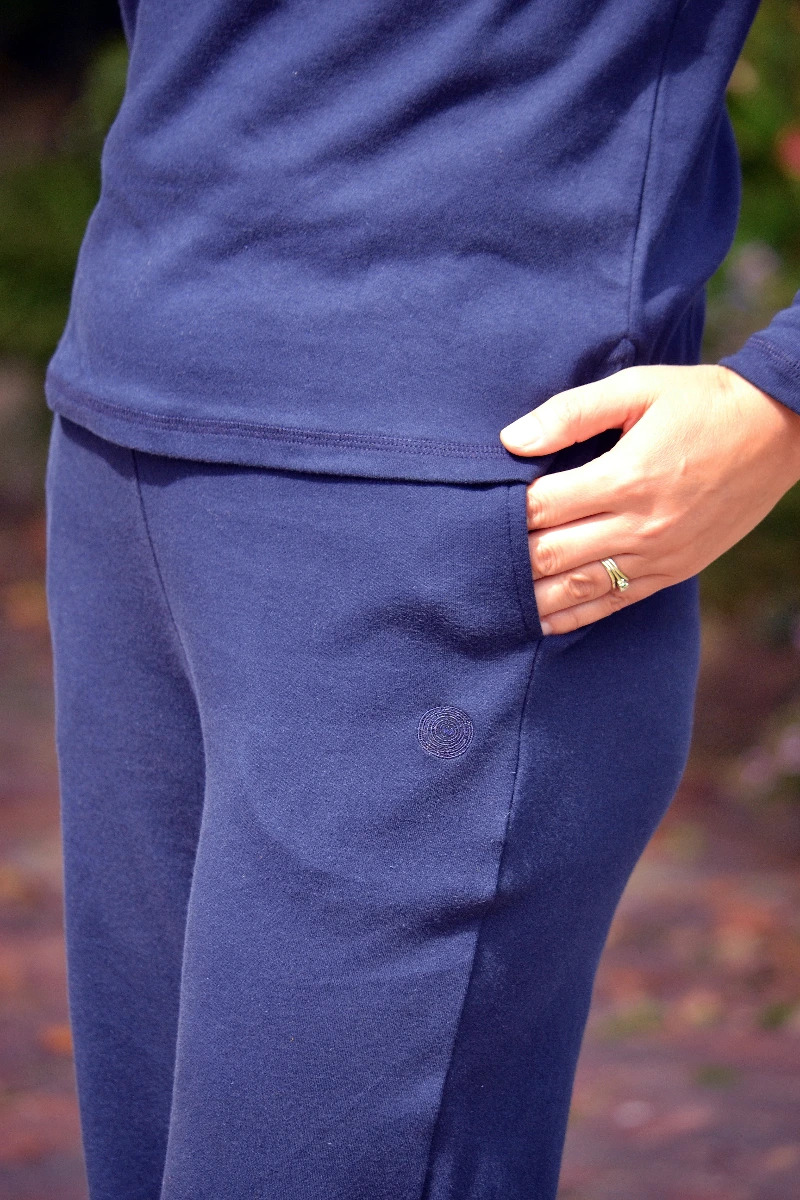 We have you coved with our comfy, yet stylish loungewear wide leg tracky bottoms. Made from an interlock cotton that gives it great structure, elasticated waistband for ultimate comfort, pockets and subtle embroidery make these a must have.